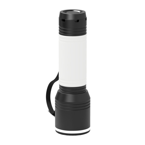 This powerful and rechargeable aluminium torch is an in-house design developed exclusively for the REEVES brand from REFLECTS. The torch is available in silver or black anodised finish, has a black carrying strap and can be combined with a silicone grip sleeve and/or a silicone ring. The silicone components are available in many different colours from Cologne. Of course it is also available without any silicone components.
