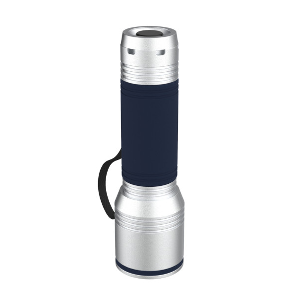 This powerful and rechargeable aluminium torch is an in-house design developed exclusively for the REEVES brand from REFLECTS. The torch is available in silver or black anodised finish, has a black carrying strap and can be combined with a silicone grip sleeve and/or a silicone ring. The silicone components are available in many different colours from Cologne. Of course it is also available without any silicone components.