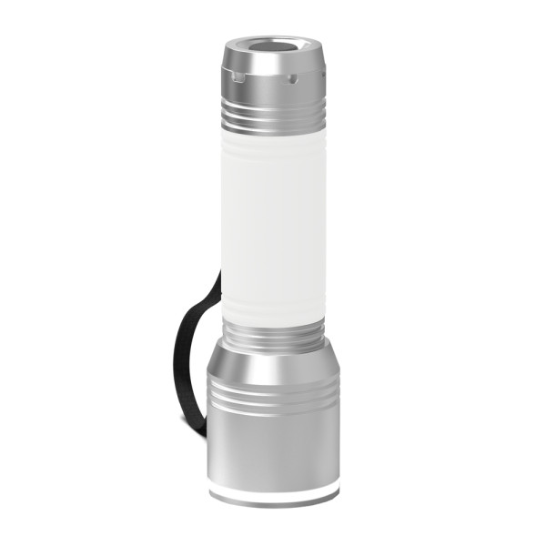 This powerful and rechargeable aluminium torch is an in-house design developed exclusively for the REEVES brand from REFLECTS. The torch is available in silver or black anodised finish, has a black carrying strap and can be combined with a silicone grip sleeve and/or a silicone ring. The silicone components are available in many different colours from Cologne. Of course it is also available without any silicone components.