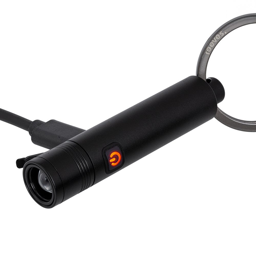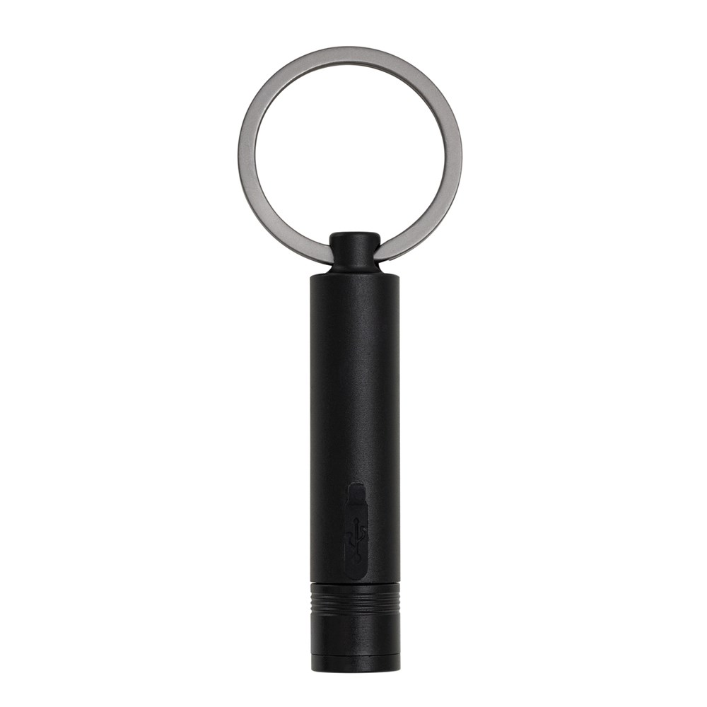 Imagine coming home at night, fumbling in the dark for the keyhole, or searching for something in a dimly lit basement. In such moments, this exclusive REFLECTS® design is your reliable source of light. This rechargeable, splash-proof LED flashlight is attached directly to a keyring. Made from recycled black anodized aluminum, the lamp stands out with its lightweight, timeless design and adjustable light intensities. All necessary safety protections are built-in for secure use.