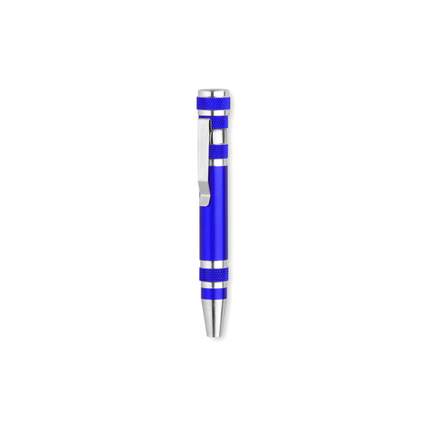 Aluminum multitool with 6 accessories in a wide range of bright metallic colors. With non-slip body and metal clip. Includes 6 flat and cross-head screwdriver heads.