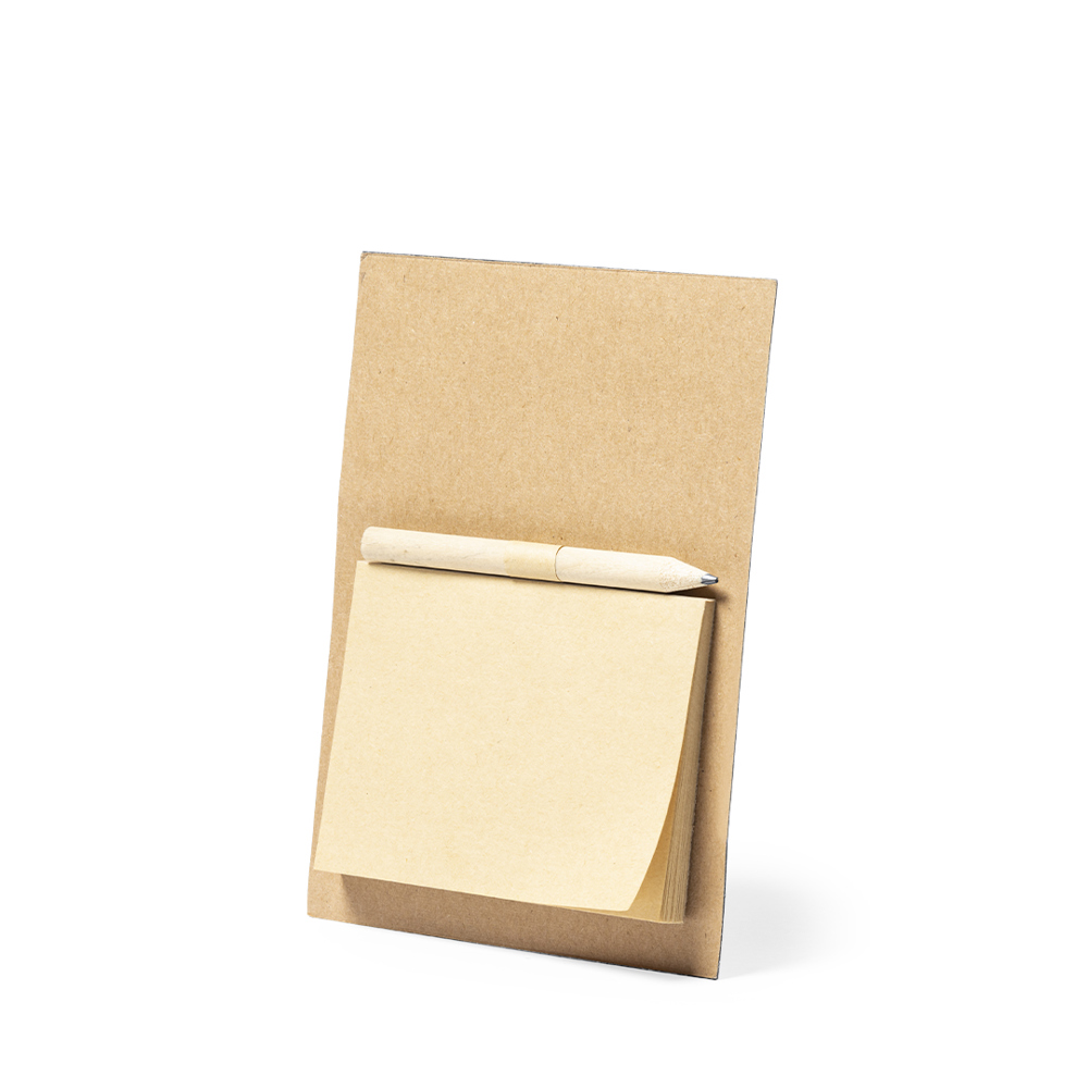 Magnet for notes in nature line. Made of solid recycled paper, including mini wooden pencil and notepad with 40 cream-colored plain sheets.