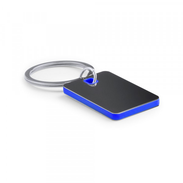 Stainless steel keychain in bicolor design, in varied colors and especially designed for laser printing.