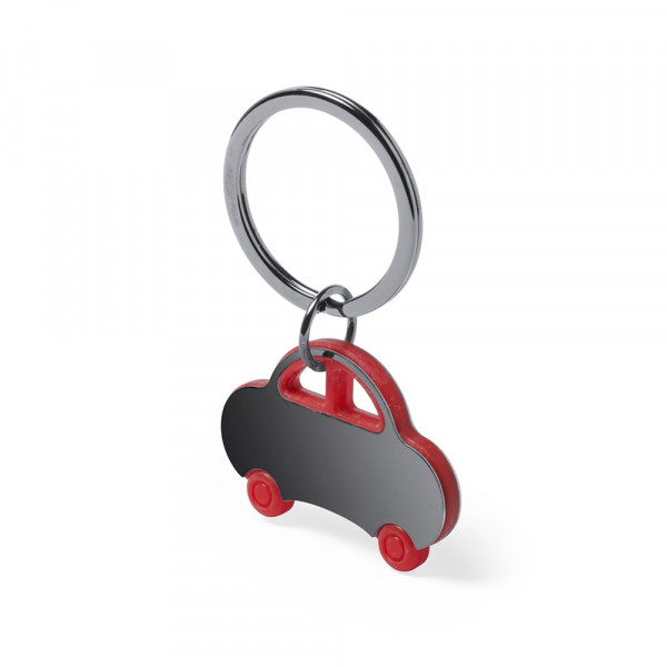 Car keychain in bicolor design with stainless steel body in a varied color combinations.