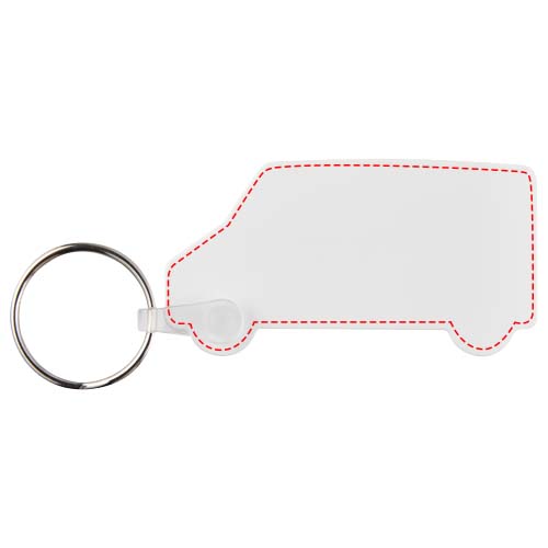 White van-shaped keychain with metal split keyring. The metal looped ring offers a flat profile... more