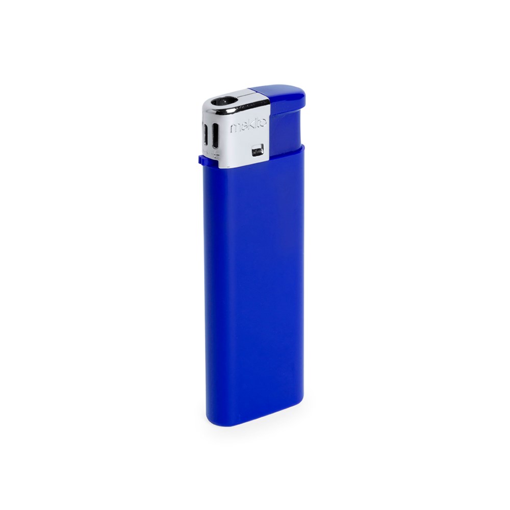 Gas lighter with electric mechanism. With child protection, refillable, flame regulator and available in a wide range of solid colours. Supplied in boxes of 50 units of the same color.