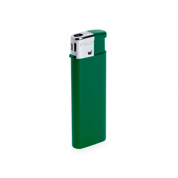 Gas lighter with electric mechanism. With child protection, refillable, flame regulator and available in a wide range of solid colours. Supplied in boxes of 50 units of the same color.