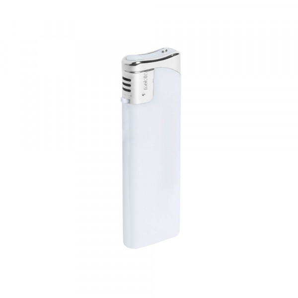 Gas lighter with electric mechanism. With child protection, refillable, flame regulator and available in a wide range of solid colours. Supplied in boxes of 50 units of the same color.