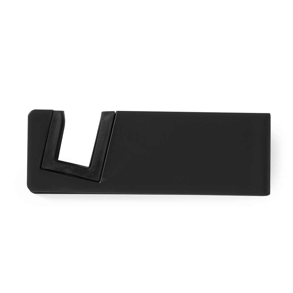 Holder for mobile device with folding legs and with PVC non-slip stops. In bold colors and especially designed for pad printing.
