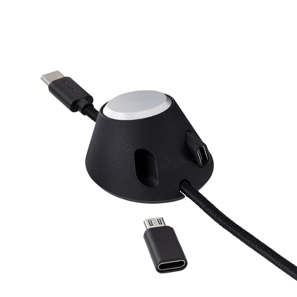 REEVES-Convertics Desktop keeps your cable within easy reach on your desk and helps you maintain a tidy workspace. Ideal for use in the office or at home, this REFLECTS® in-house design comes in classic black or white and features a non-slip silicone base. To secure your cable in the holder, simply insert it into the guide on the base. The practical recess on the bottom of the holder provides additional storage space for the USB-C cable.