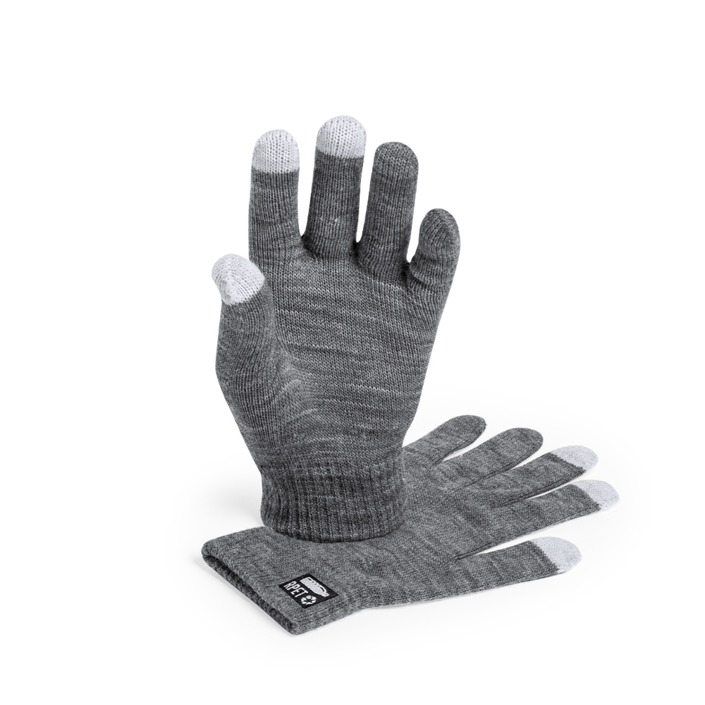 Practical pair of nature line gloves for touch screen devices. Warm and soft RPET polyester finish, made from recycled plastic to encourage the reuse of plastic waste and contribute to the sustainability of the planet. Touch function on middle, index and thumb. One size fits all, with RPET logo on outer label.