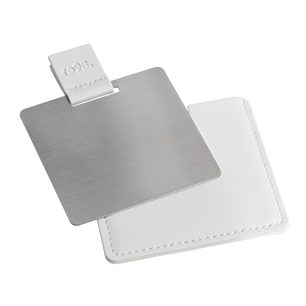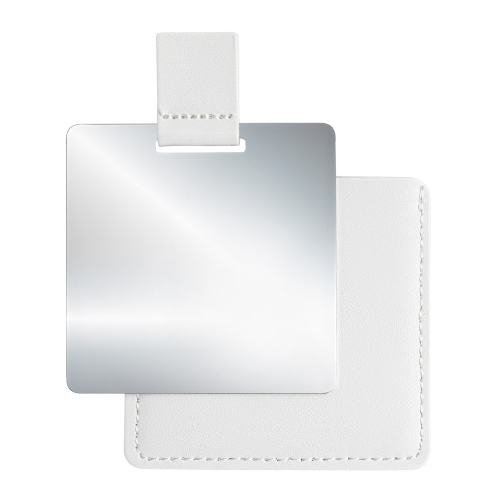 A must-have for anyone who values a well-groomed appearance. With this lightweight, handy pocket mirror, you can check your hair, touch up makeup, or quickly reapply lipstick while on the go. The shatterproof stainless steel mirror features a high-gloss polished surface on one side and a brushed finish on the other. It’s securely stored in a faux leather case and can be easily removed thanks to the grip tab. The case, with decorative stitching, is available in elegant black or white and impresses with its soft, pleasant texture.