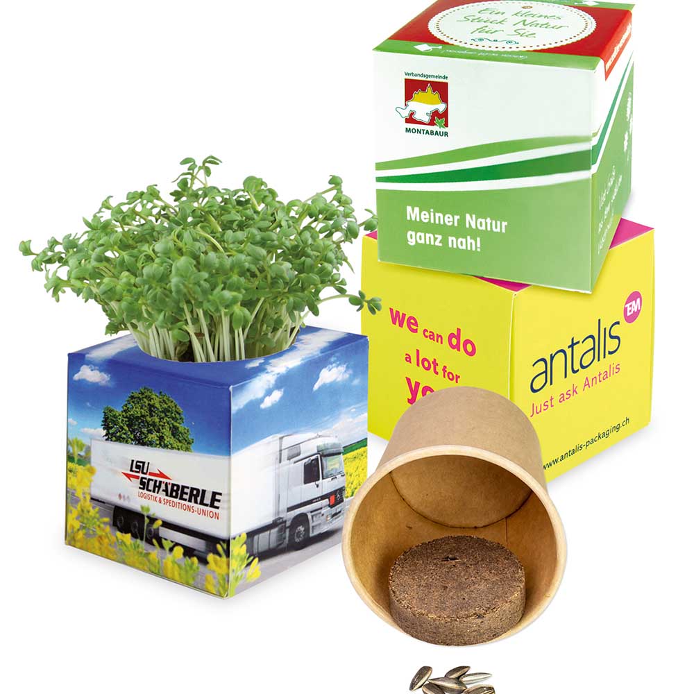 Pflanz-Würfel 2.0 mit Samen - Weihnachten - Glücksklee-Zwiebeln (* Je nach Verfügbarkeit der Glücksklee-Zwiebeln)