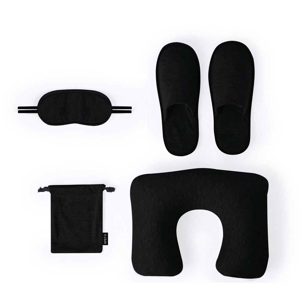 Tolles Reiseset aus weichem Polyester. Das Set enthält:Ergonomisches NackenkissenWeiche Augenmaske mit verstellbarem BandPassende PantoffelnLeicht zu verstauen in der Hülle aus RPET. Erhältlich in eleganten Farben, mit unverwechselbarem RPET-Logo auf der Hülle.RPET wird aus recyceltem Kunststoff hergestellt, um die Wiederverwendung von Kunststoffabfällen zu fördern und die Nachhaltigkeit des Planeten zu unterstützen.