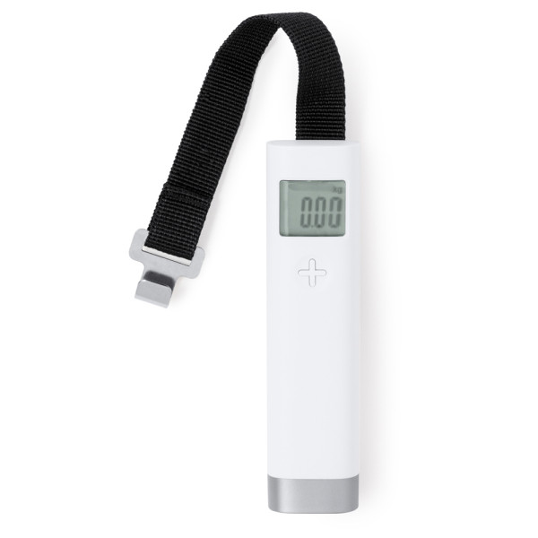 Leichte und praktische Gepäckwaage. Mit digitaler Anzeige und Wiegekapazität bis 50 kg. Leicht zu tragen und mit dem praktischen Haken an Koffern, Rucksäcken oder Taschen zu befestigen. Bedienungsanleitung in Englisch und Spanisch verfügbar. Batteriebetrieben (1 Knopfzelle im Lieferumfang enthalten).