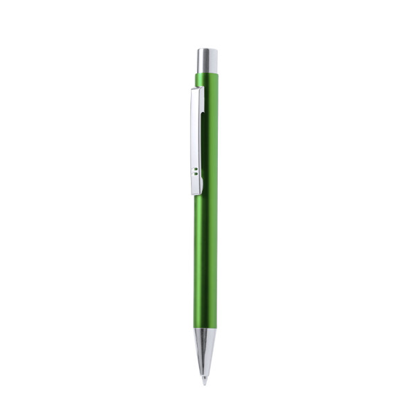 Stilvoller Kugelschreiber aus recyceltem Aluminium mit Druckknopfmechanismus. Robuster Schaft aus recyceltem Aluminium mit glänzender Oberfläche in verschiedenen Farben, mit blauer Tinte und mit Jumbo-Patrone. Metallclip und präsentiert in einer individuellen recycelten Tasche.
