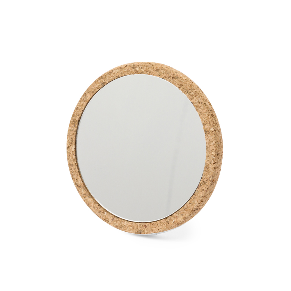 1X Spiegel aus Kork. Praktisch, tragbar und in einer individuellen Kraft-Designbox präsentiert.