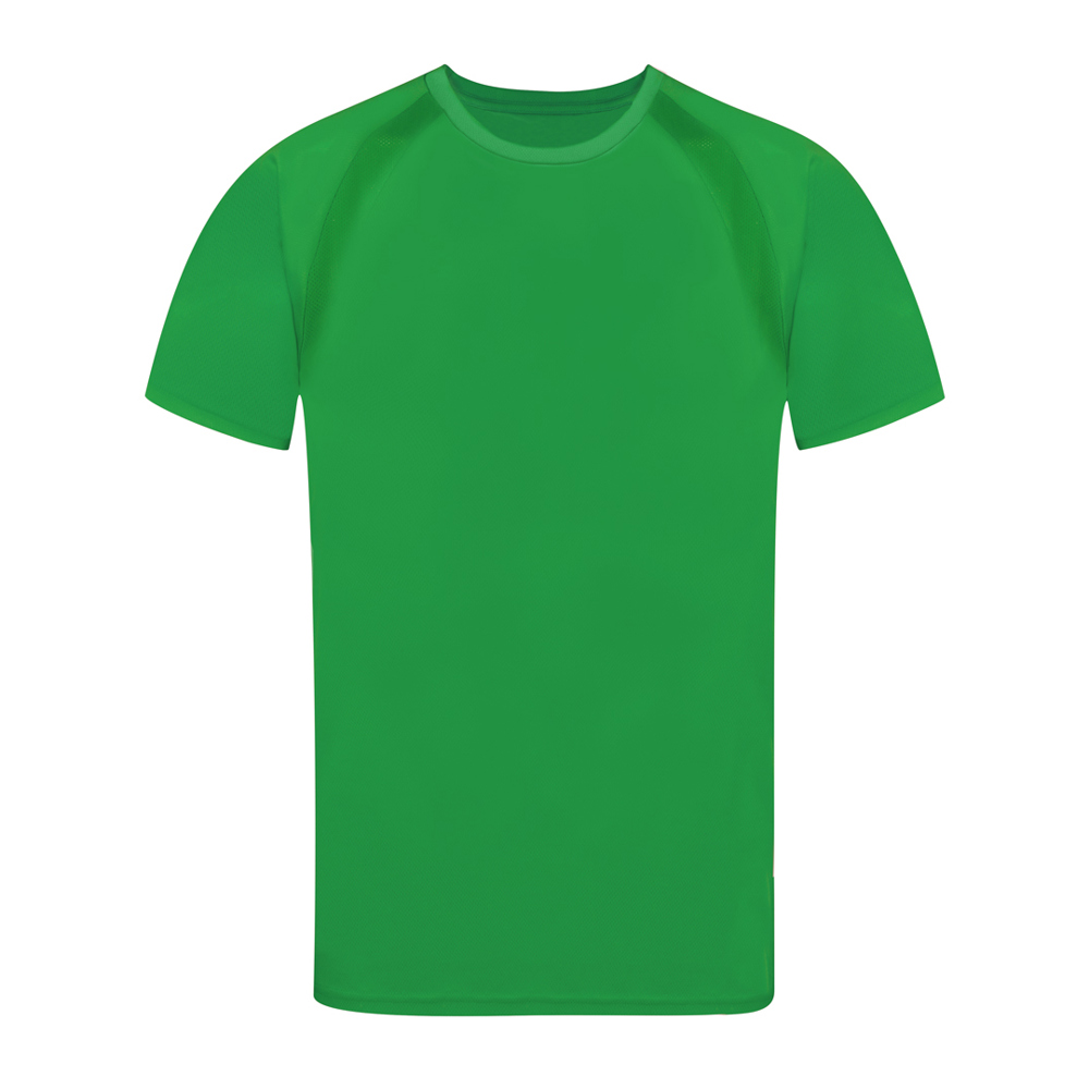 Technisches T-Shirt für Erwachsene aus 100% atmungsaktivem Polyester 135g/m2. Mit Ranglan-Ärmeln, Rundhalsausschnitt und Front- und Seitenstreifen aus atmungsaktivem, mikroperforiertem Gewebe. Erhältlich in den Größen S, M, L, XL, XXL.
