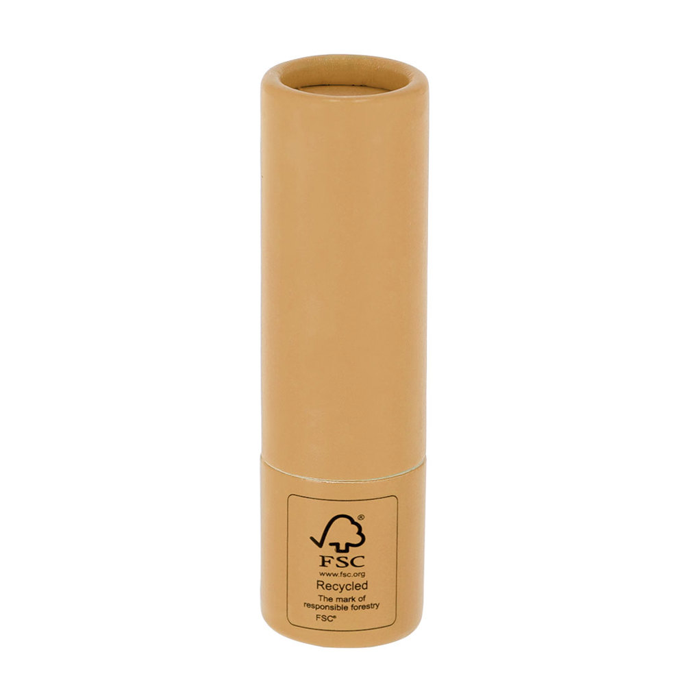 Lippenbalsam aus FSC-zertifiziertem recyceltem Karton. Vanilleduft. SPF15-Schutz. Dermatologisch getestet. FSC®-Label auf der Verpackung.