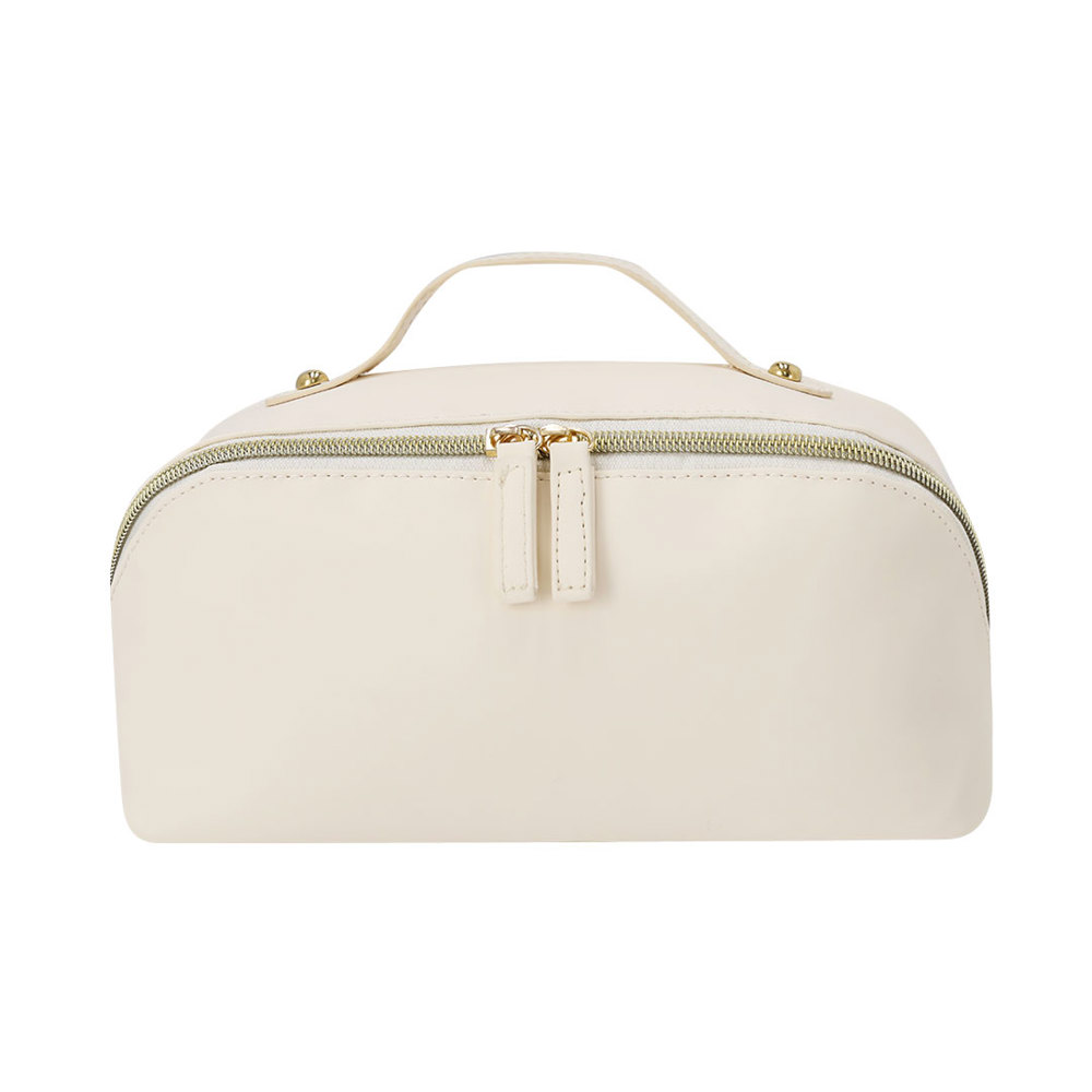 Necessaire aus weichem PU mit Hauptfach von großer Öffnung. Mit passenden PU-Ziehband und gelbem Reißverschluss. Innen mit doppeltem Fach und zusätzlichem Reißverschluss-Tasche.