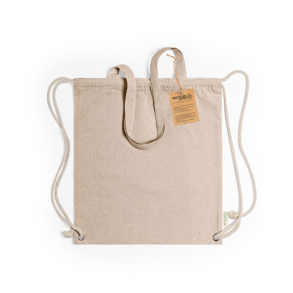 Linie Natur Rucksack mit Kordelzug aus robuster 140g/m2 Recycling-Baumwolle, mit passenden 70 cm langen Henkeln. Kordel aus ecrufarbener Baumwolle, mit verstärkten Metallringen und unverwechselbarem Etikett für recycelte Baumwolle. Erhältlich in einer breiten Palette von Farben. Belastbar bis zu einem Gewicht von 9 kg.