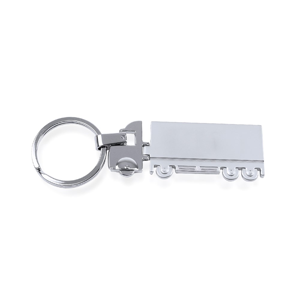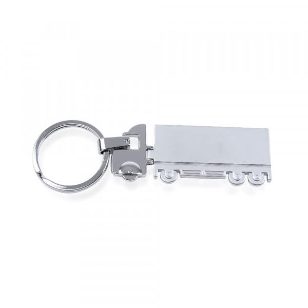 Schlüsselanhänger aus Metall mit tollem LKW-Design - speziell für den Laserdruck entwickelt. Mit Kabine in glänzender und Anhänger in matter Ausführung.