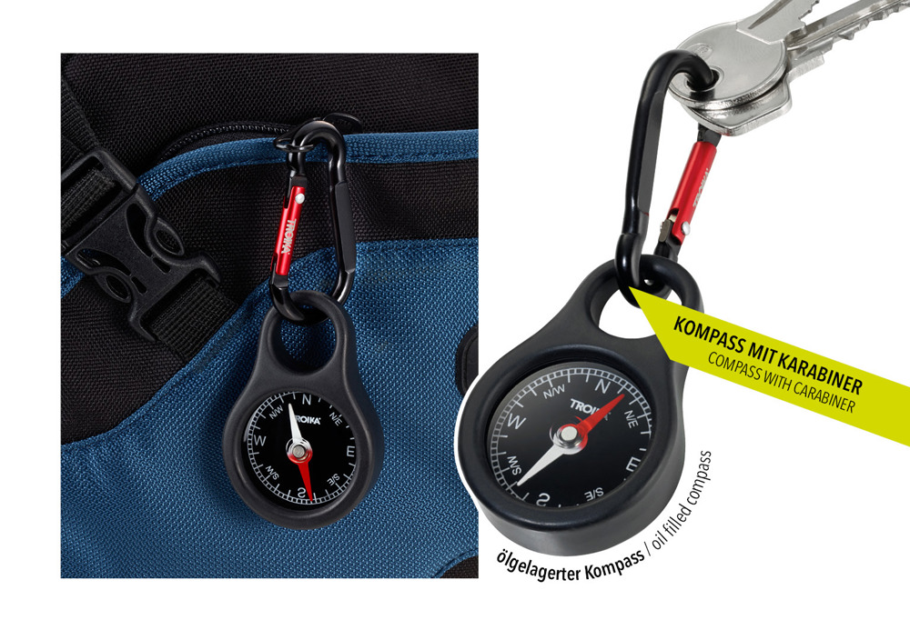Schlüsselanhänger mit Kompass, inkl. Karabinerhaken, ABS, Acryl, Aluminium, PVC, rot/schwarz