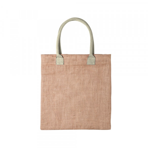 Jutetasche mit mittellangen, verstärkten Griffen aus Baumwolle in verschiedenen lebendigen Farben. Belastbar mit bis zu 9 kg.