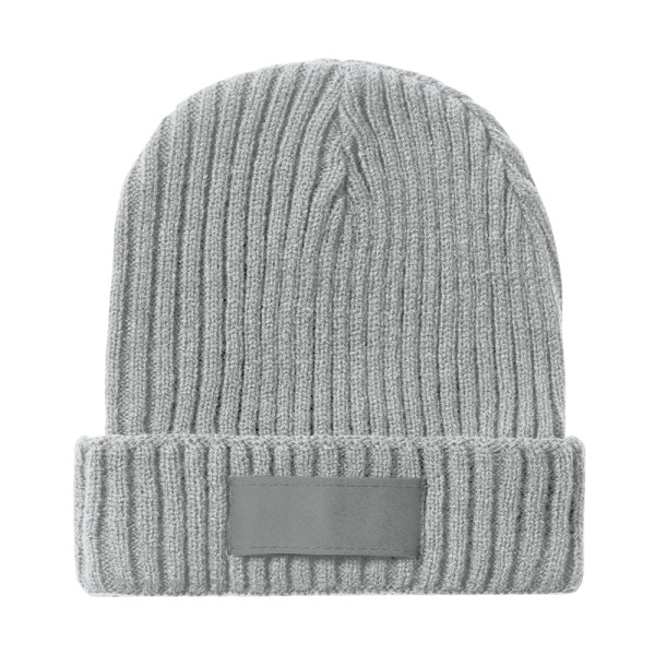 Weiche und warme Rippenstrickmütze aus elastischem Acrylmaterial. Inklusive passendem Etikett für...