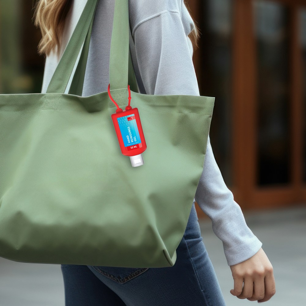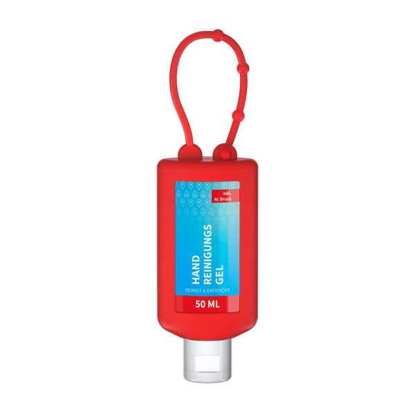 Handreinigungsgel, 50 ml Bumper rot, Body Label (R-PET)